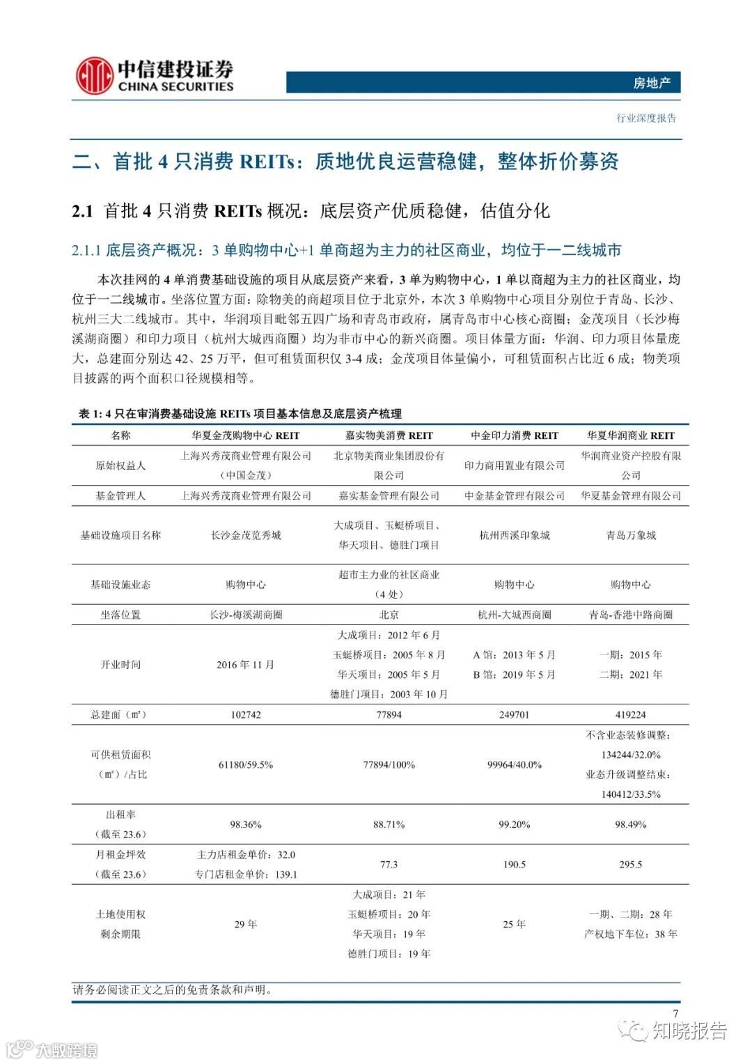 首批 4 单消费基础设施 REITs 于沪深两所挂网,包含华润、印力及金茂作为原始权益人的 3 单购物中心项目及物美商业为原始权益人的 1 单商超项目。4 单项目原始权益人均为所属赛道龙头,底层资产均位于一二线城市,整体质地较优,疫情期间经营稳健。