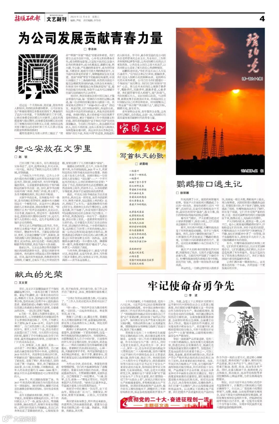 《抚顺石化报》2024年11月6日 抚顺石化人