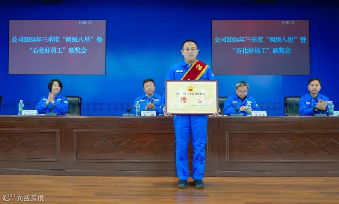 10月28日,公司领导在生产经营周例会前为三季度“两级八星”评比获奖单位和“石化好员工”颁奖,公司党委副书记、工会主席赵宝红主持颁奖会。