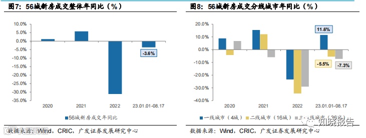 年度来看,截至2023年8月17日,新房成交同比22年同期下降3.6%,其中一线 同比上升11.6%,二线、三四线城市分别同比下降5.5%、7.3%。