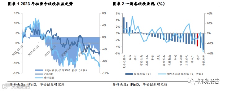 建材板块进入三季报密集披露期,本周末多家企业披露三季度经营数据及季报。①鸿路钢构:前三季度钢结构产品产量约 323.21 万吨,同比增长 31.35%,其中三 季度钢结构产量为 112.88 万吨;前三季度签订合同金额为 229.21 亿元,同比增长 17.14%,材料订单占比 99.77%;第三季度的重大合同订单多来自于光伏新能源产 业链等相关项目,预计未来轻钢产品占比将持续增加。②旗滨集团:2023 年前三季 度实现营收 111.85 亿元,同比增长 13.68%,实现归母净利润 12.48 亿元,同比下降 0.42%;前三季度销售毛利率为 23.36%,环比持续提升,销售净利率为 11.16%, 年初以来修复明显。浮法玻璃价格伴随下游补库,三季度稳步上涨,四季度在保交 楼任务支撑下,预计价格仍有上行空间;成本端压力可控,纯碱 8 月以来因供给收缩涨价,预计冷修线复产后四季度价格回落,企业盈利有望环比改善;公司坚持培 育新业务板块,光伏玻璃产能维持投产节奏,新产线已在今年 6、7、9 月陆续点火, 目前光伏玻璃价格处于底部,该业务板块有望。