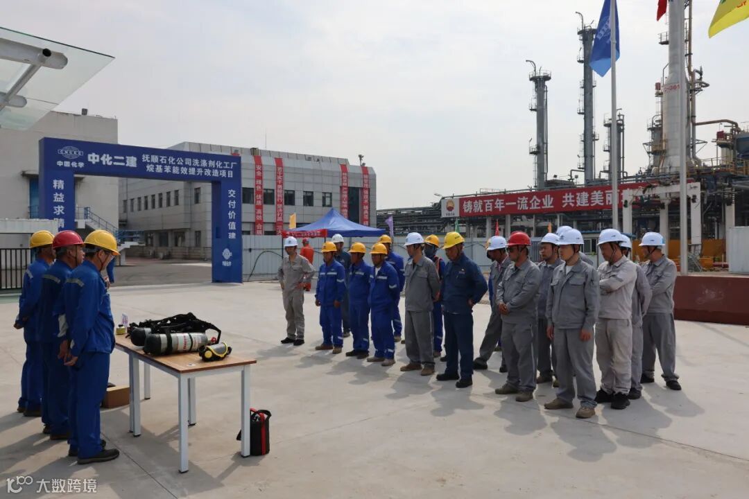 随着烷基苯能效提升项目的全面排开,每日施工量大,且属地区域内存在氢氟酸等危化品,安全风险高。为此,洗化厂组织中化二建等施工单位开展了安全专项培训,由技术人员向施工单位员工传授施工安全防范措施,演示空气呼吸器等防护用品的佩戴步骤,并进行现场指导,筑牢安全防线。
