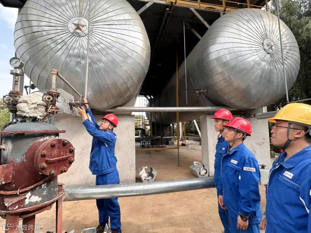 在P-223新鲜酸泵旁,参检队员们紧盯机泵压力,缓慢开关阀门,有条不紊地进行着退酸操作。炎热的天气条件对全体参检队员来说都是不小的挑战与考验,但他们并没有因此退缩,纷纷打起十二分的精神,挥汗如雨,动真碰硬,越战越勇,朝着心中安全平稳退料的共同目标不懈奋斗,生动地展示出新时代洗化人不畏艰难,昂扬向上的精神风貌。