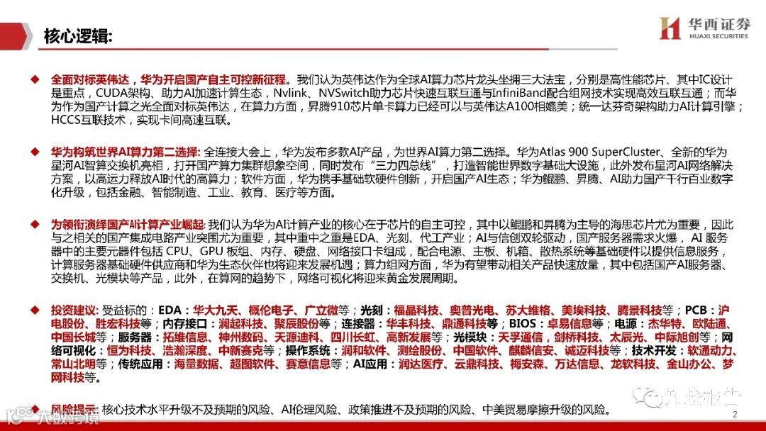 全面对标英伟达,华为开启国产自主可控新征程。我们认为英英伟达作为全球