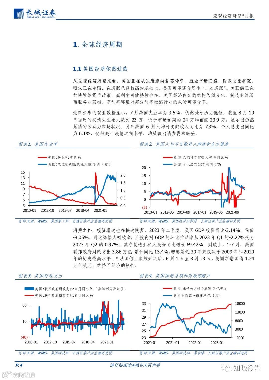 美国经济依然过热。从全球经济周期来看,美国正在从浅衰退向复苏转变,就业市场旺盛,财政支出扩张,需求正在走强。在通胀已经较高的基础上,美国可能还会发生“二次通胀”。美联储正在加快紧缩货币政策,高利率可能持续存在。美国经济内部的结构依然分化,制造业偏弱而服务业强韧。高利率环境对部分利率敏感行业的风险可能较高。