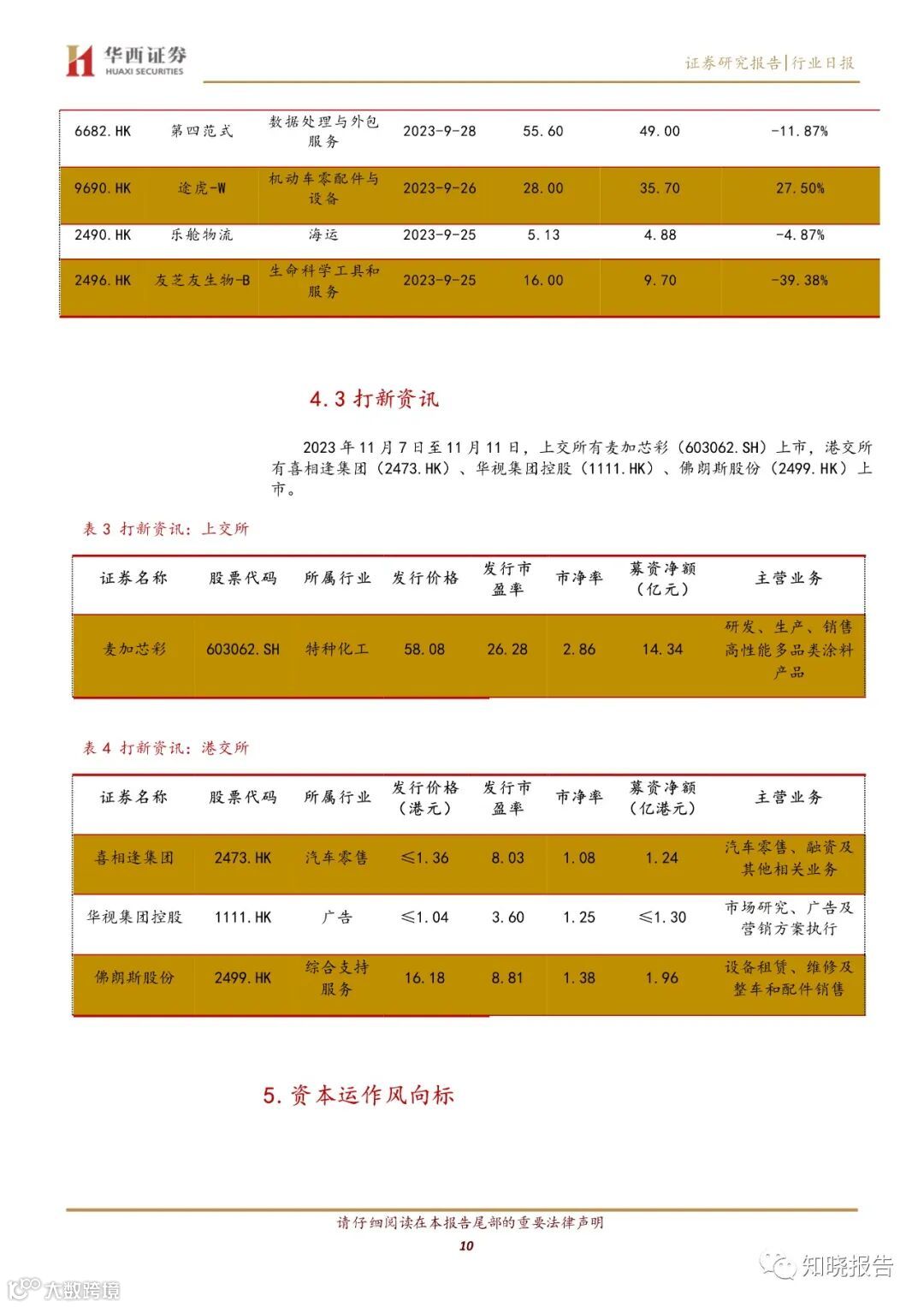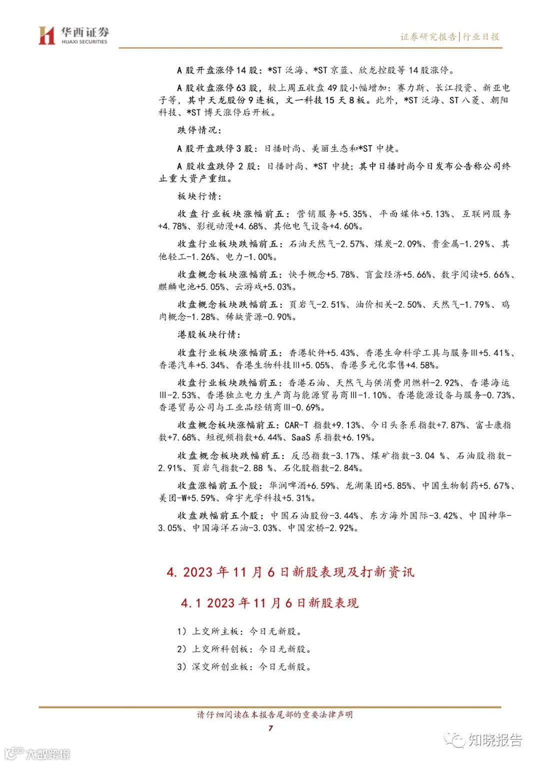 A 股:营销服务、平面媒体等板块涨幅靠前,石油天然气、煤炭等板块跌幅靠前;港股:香港软件、香港生命科学工具与服务Ⅲ等板块涨幅靠前,香港石油、天然气与供消费用燃料、香港海运Ⅲ等板块跌幅靠前。