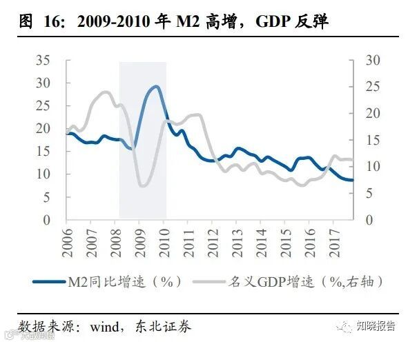 四万亿刺激计划拉动需求增长,催生新一轮次高端白酒牛市。2008 年底“四万亿” 政策推出,计划在未来的两年内新增加约4万亿元的投资。在四万亿政策的推动下, 各项投资增速明显,2009 年固定资产投资额同比增长超 30%,增速环比提升了 5 个 百分点,增速和总量的突破呈现明显波峰;2009 年上半年名义 GDP 增速探底并大幅 反弹,期间 M2 增速始终保持在高位;宏观经济增速恢复以及持续宽松的货币政策 带动需求增长,大盘指数上移,为白酒板块估值上移创造了条件。受益于此,白酒 板块在 2009 年迎来收入利润增速恢复+估值上行的“戴维斯双击”,并开启了为期 三年的第二轮牛市。
