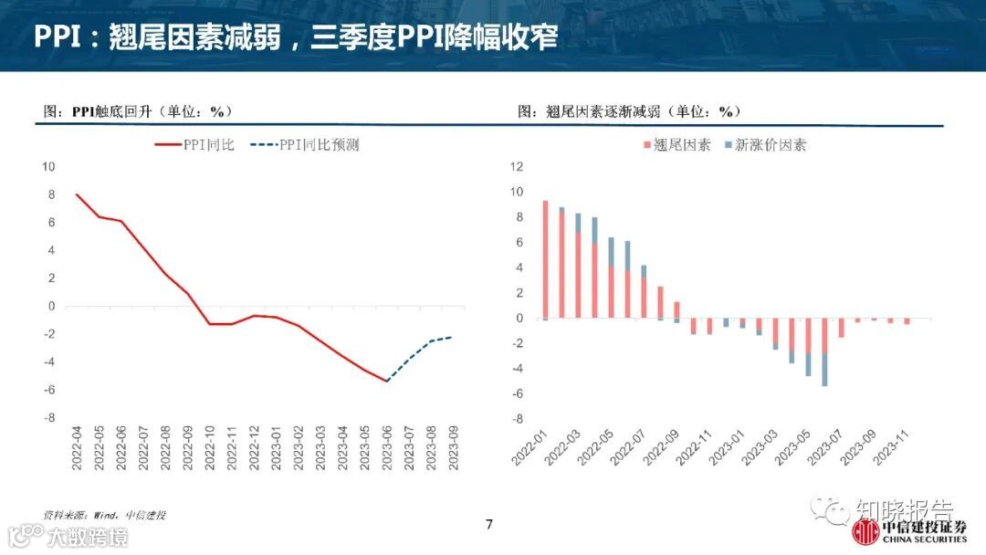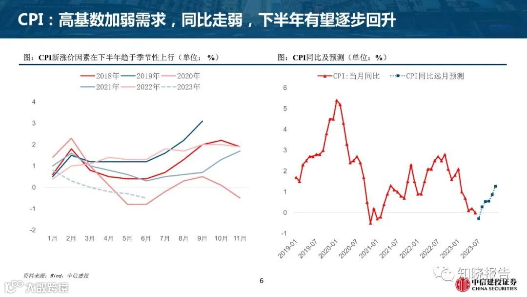 CPI同比走弱主因高基数加弱需求,下半年有望回升;随着翘尾因素减弱,预计三季度PPI降幅收窄,下半年逐步回升。