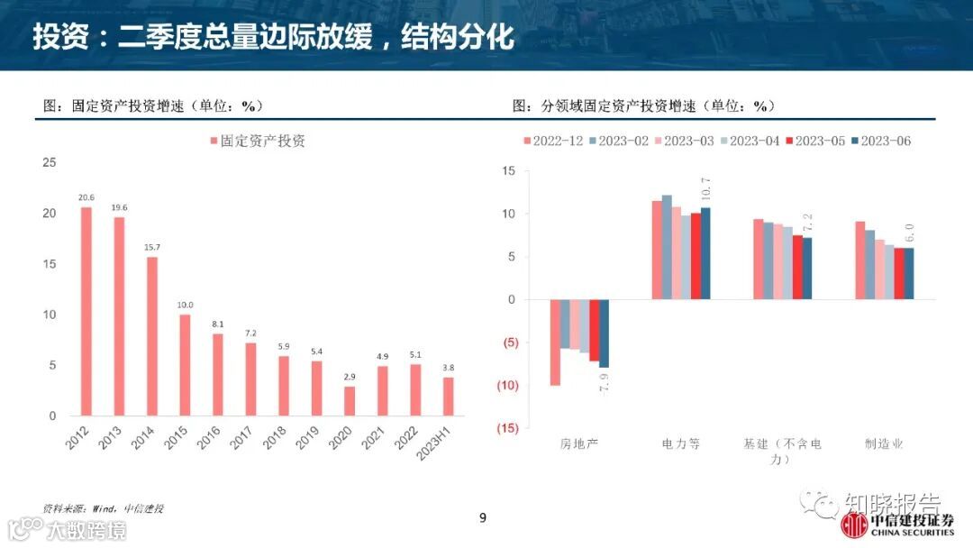 需求方面,二季度投资总量放缓,结构分化,高技术产业保持高增,基建中枢回落,地产仍下行;消费阶段性转弱,6月边际回暖;多元化和汽车行业崛起对冲外需下降;海外软着陆预期升温。