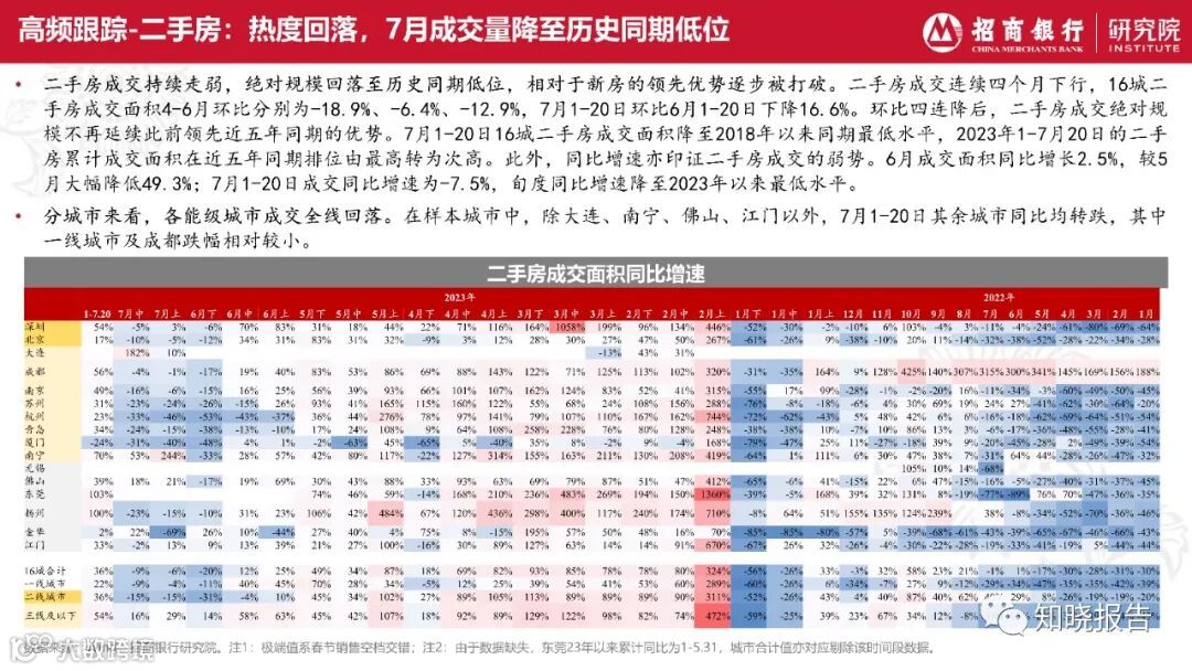 高频 跟踪数据显示,7月新房在基数效应减弱背景下依旧弱势,成交量显著下台阶,而二手房成交绝对规模领先近五年同期的优势已 不再延续。市场复苏前景变得不明朗,等待需求端、供给端政策进一步落地。