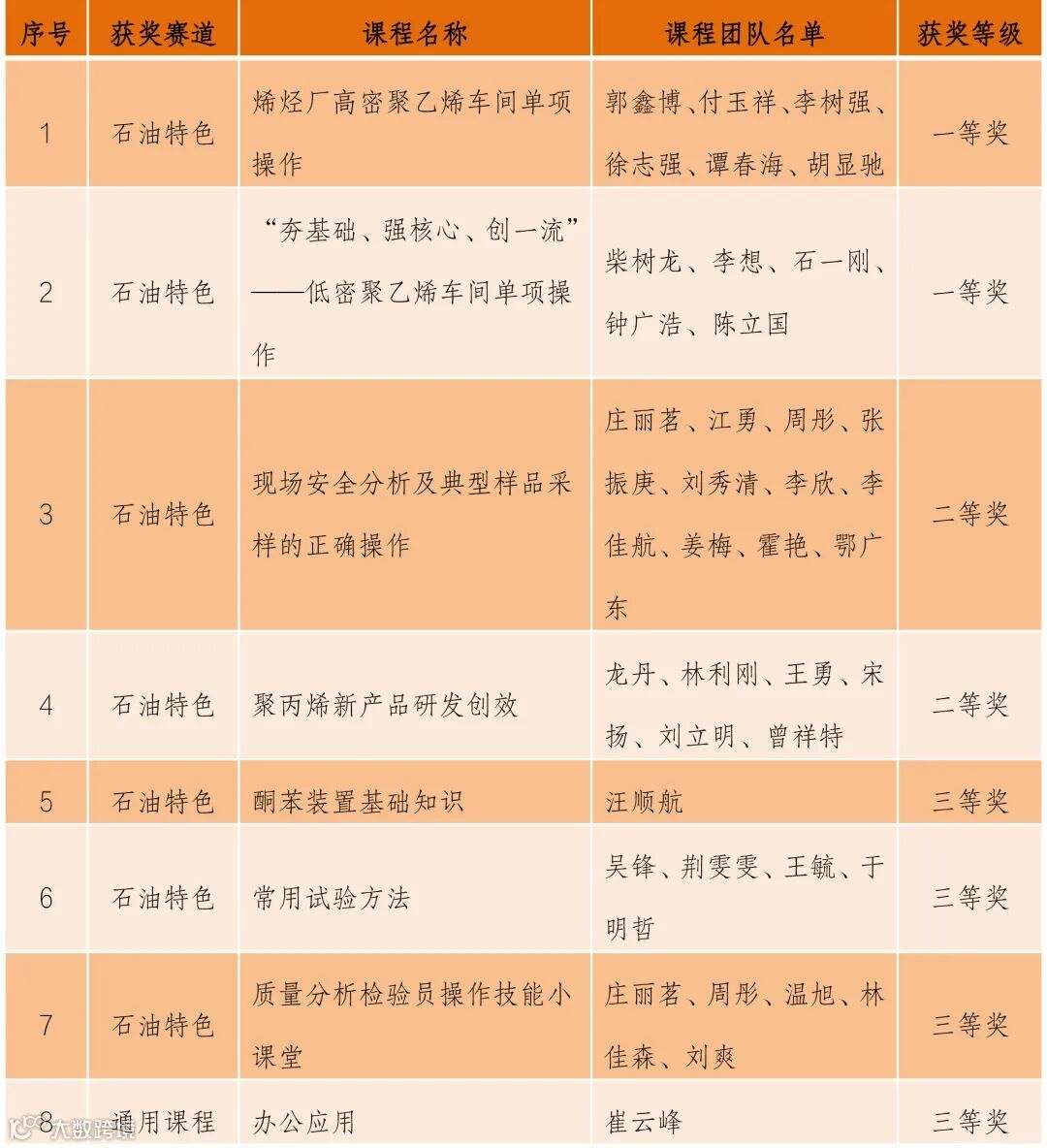 为做好本次网络课程评选,按照《集团公司网络培训工作管理办法》和优秀网络课程征集活动安排,公司积极面向本部和直属各单位开展征集,对重点课程进行集中录制打磨,精心打造了41套,175个视频课程。此次公司推送的课程在内容质量、教学设计、技术应用以及教学效果评估等多方面均有突出表现,经集团公司初评和复评,《烯烃厂高密聚乙烯车间单项操作》等8套课程脱颖而出,成功入选集团公司优秀网络课程名单。这些获奖课程,充分体现了公司对员工培训与知识传承的高度重视,是公司近年来在推动数字化学习资源建设方面所取得的显著成果。