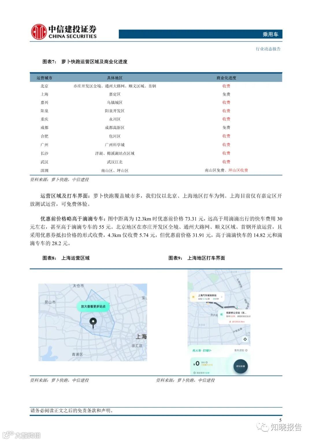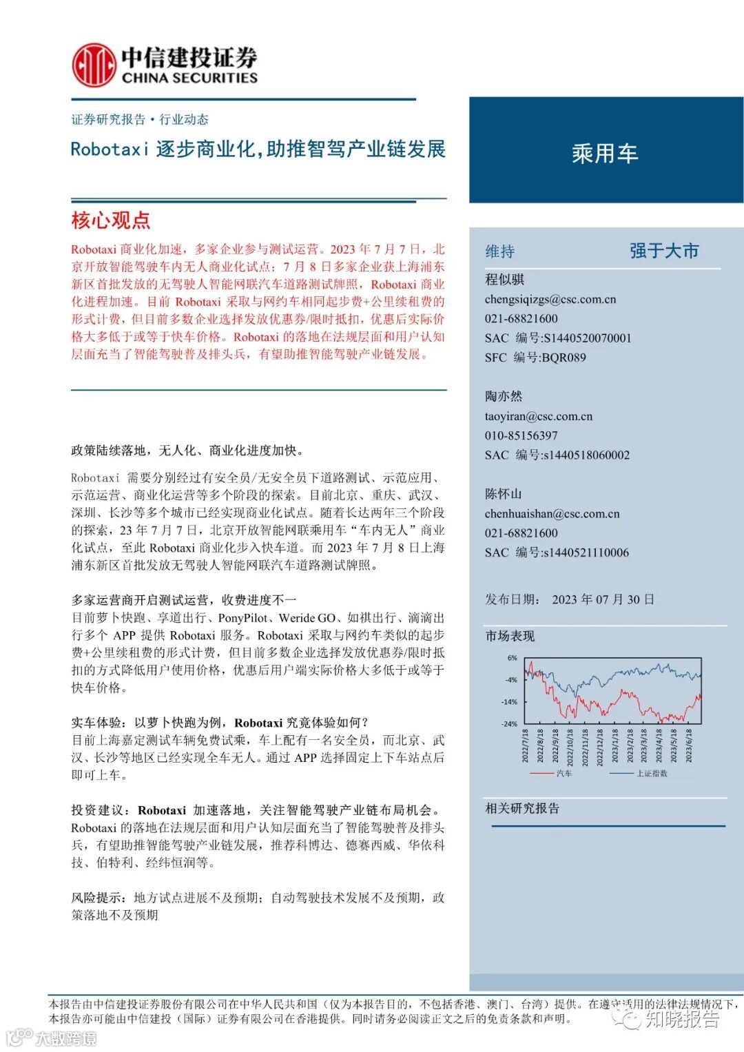 Robotaxi商业化加速,多家企业参与测试运营。2023年7月7日,北京开放智能驾驶车内无人商业化试点;7月8日多家企业获上海浦东新区首批发放的无驾驶人智能网联汽车道路测试牌照,Robotaxi商业化进程加速。目前Robotaxi采取与网约车相同起步费+公里续租费的形式计费,但目前多数企业选择发放优惠券/限时抵扣,优惠后实际价格大多低于或等于快车价格。Robotaxi的落地在法规层面和用户认知层面充当了智能驾驶普及排头兵,有望助推智能驾驶产业链发展。