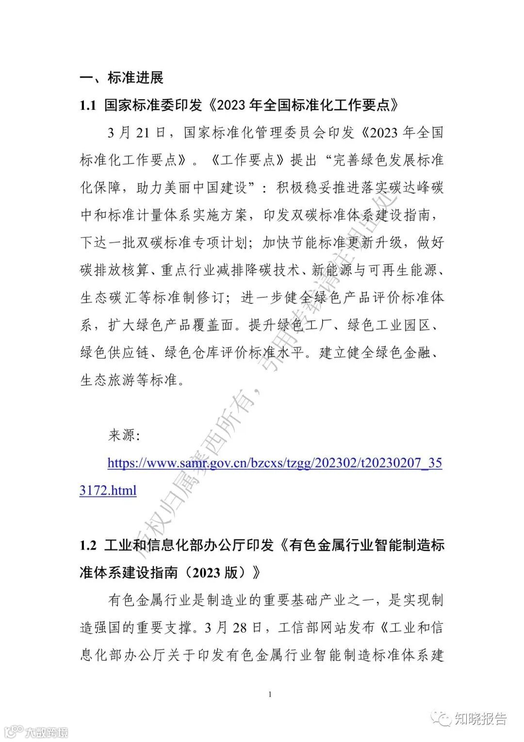 3 月 21 日,国家标准化管理委员会印发《2023 年全国标准化工作要点》。《工作要点》提出“完善绿色发展标准化保障,助力美丽中国建设”:积极稳妥推进落实碳达峰碳中和标准计量体系实施方案,印发双碳标准体系建设指南,下达一批双碳标准专项计划