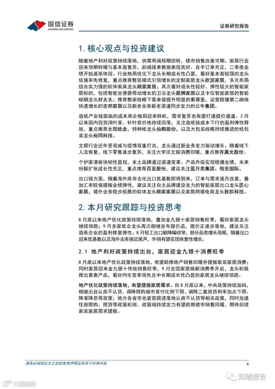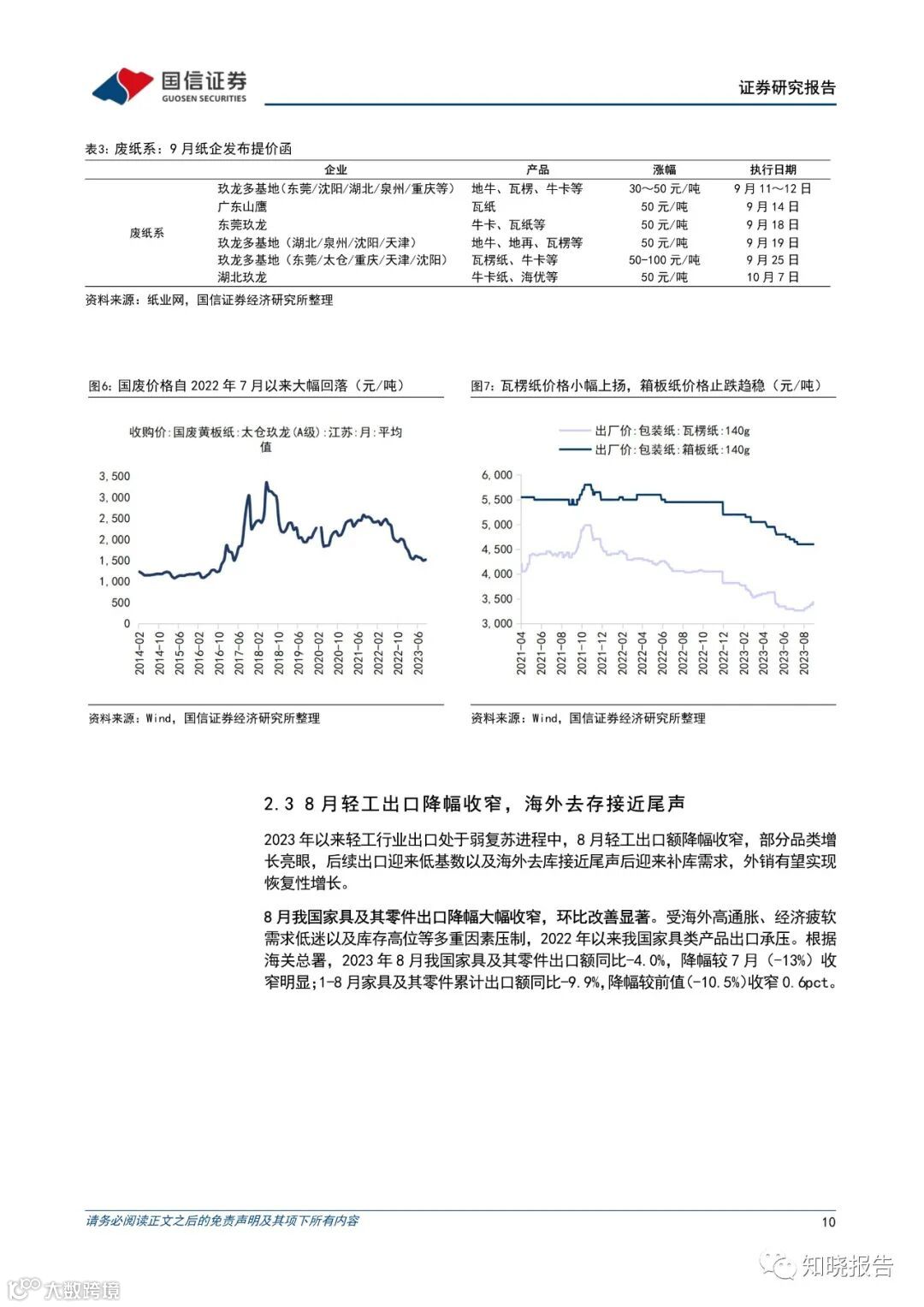 本月研究跟踪与投资思考:金九银十正迎行业传统销售旺季,当前地产优化政策持续出台,造纸纸企提价逐步落地以及轻工出口数据环比改善,建议关注家居及造纸顺周期板块以及低基数下的出口链。