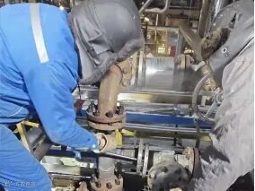 面对这一突发状况,郭毅迅速用对讲机报告班组其他人员并启动应急预案,第一时间向生产作业二区管理人员及调度汇报,同时组织班组人员对泄漏部位进行蒸汽保护。