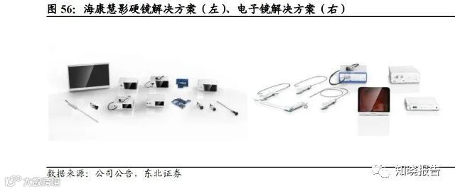 基于视频图像领域的沉淀,海康慧影在医疗领域推出医疗视觉、数字医疗等解决 方案。海康慧影深入挖掘医疗行业用户需求,面对医疗行业对于特定成像效果的 专业要求,海康慧影基于在视频图像领域的技术积累和持续研发,在全链路 4K、 实时流媒体传输、智能 AI 算法等方面具备了一定的竞争优势。海康慧影致力于医 疗场景下的视觉成像、多维感知、人工智能等相关技术研究,为客户提供产品及 相关解决方案。海康慧影业务主要涉及医疗视觉、数字医疗等领域。 利用内窥镜可以看到外部检查不能显示的病变,海康慧影在微创手术、微创诊疗 中推出诸多解决方案。海康慧影在医疗视觉领域,海康慧影在微创手术、诊疗中,医生利用内窥镜可以看到 X 射线、MRI 等外部检查不能显示的病变。2021 年,海 康慧影围绕微创手术应用,推出一系列硬镜解决方案(4K 自动聚焦摄像系统、4K 荧光摄像系统、3D 摄像系统、超高清光学镜等)以及医用显示屏等解决方案;围 绕微创诊疗应用,先后推出一系列电子镜解决方案(电子镜摄像系统、重复性电 子镜及一次性电子镜等整体解决方案)。