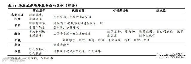 海外成功案例不断落地,各国认可度持续提升。海康威视立足当地将业务本土化, 根据客户不同背景、不同需求定制化输出产品和解决方案,目前公司已在不同行 业完成了不同应用场景的落地,获得了海外用户的广泛认可与支持,逐渐成为公 司业绩增长的强力新引擎。