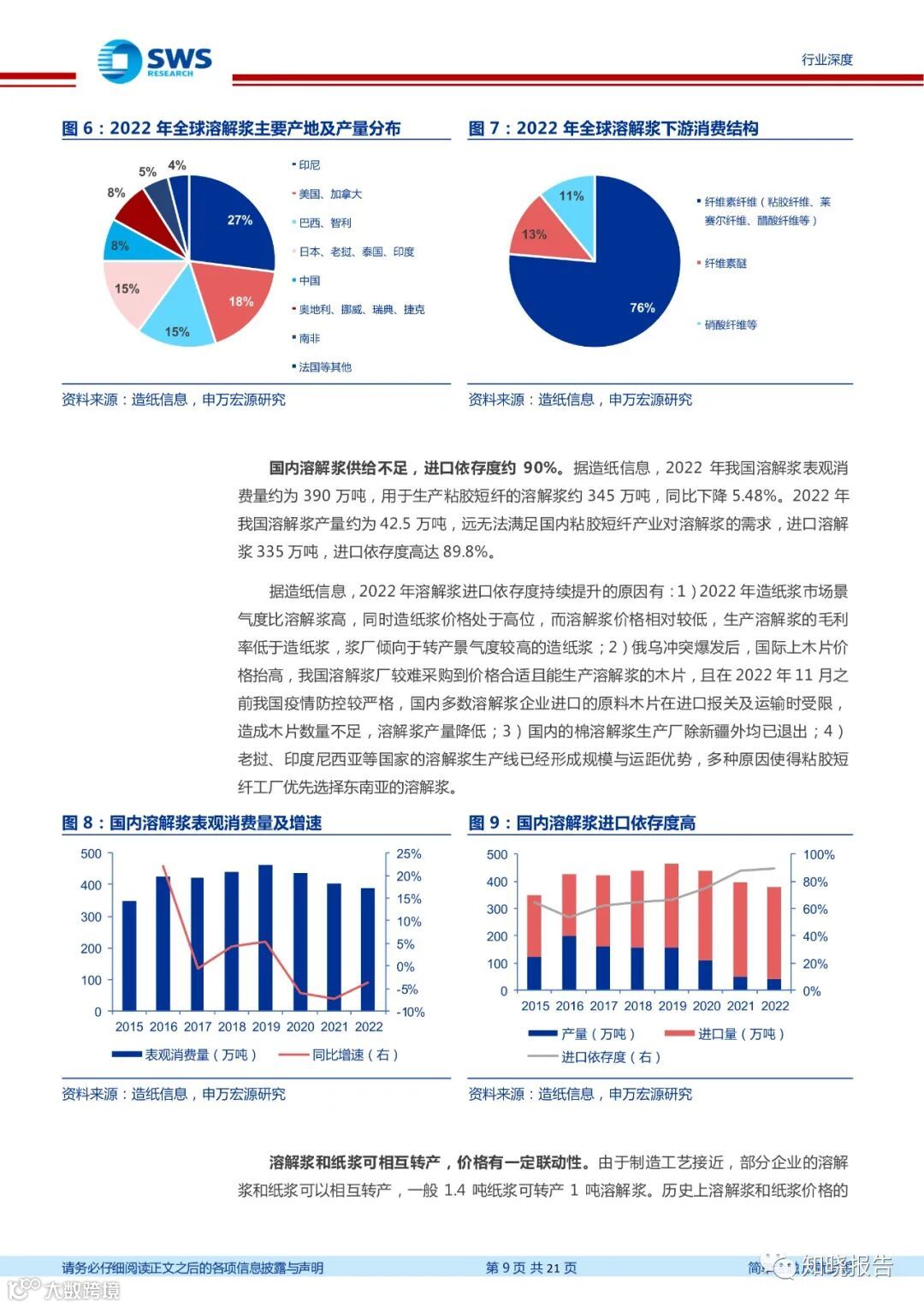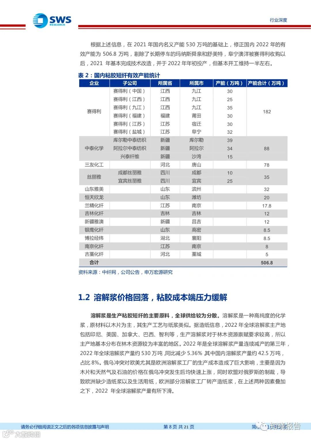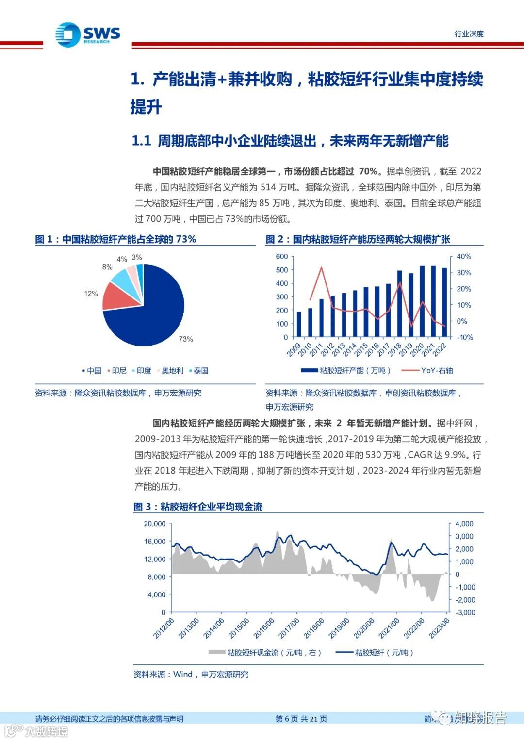 中国粘胶短纤产能稳居全球第一,市场份额占比超过 70%。据卓创资讯,截至 2022年底,国内粘胶短纤名义产能为 514 万吨。据隆众资讯,全球范围内除中国外,印尼为第二大粘胶短纤生产国,总产能为 85 万吨,其次为印度、奥地利、泰国。目前全球总产能超过 700 万吨,中国已占 73%的市场份额。