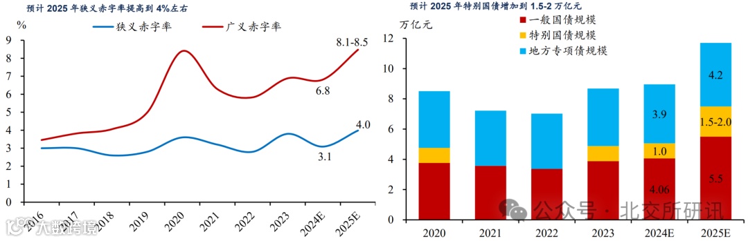 预计2025年降息(政策利率)可能有50BP的空间,降准可能有1个百分点的空间。值得注意的是降准,我们测算的2025年准备金缺口为1.2万亿,降准1个百分点释放的资金已经足以解决该缺口且有余量,因此我们认为2025年降准大概率不会超过1个百分点,过高的降准预期可能同样难以落地。