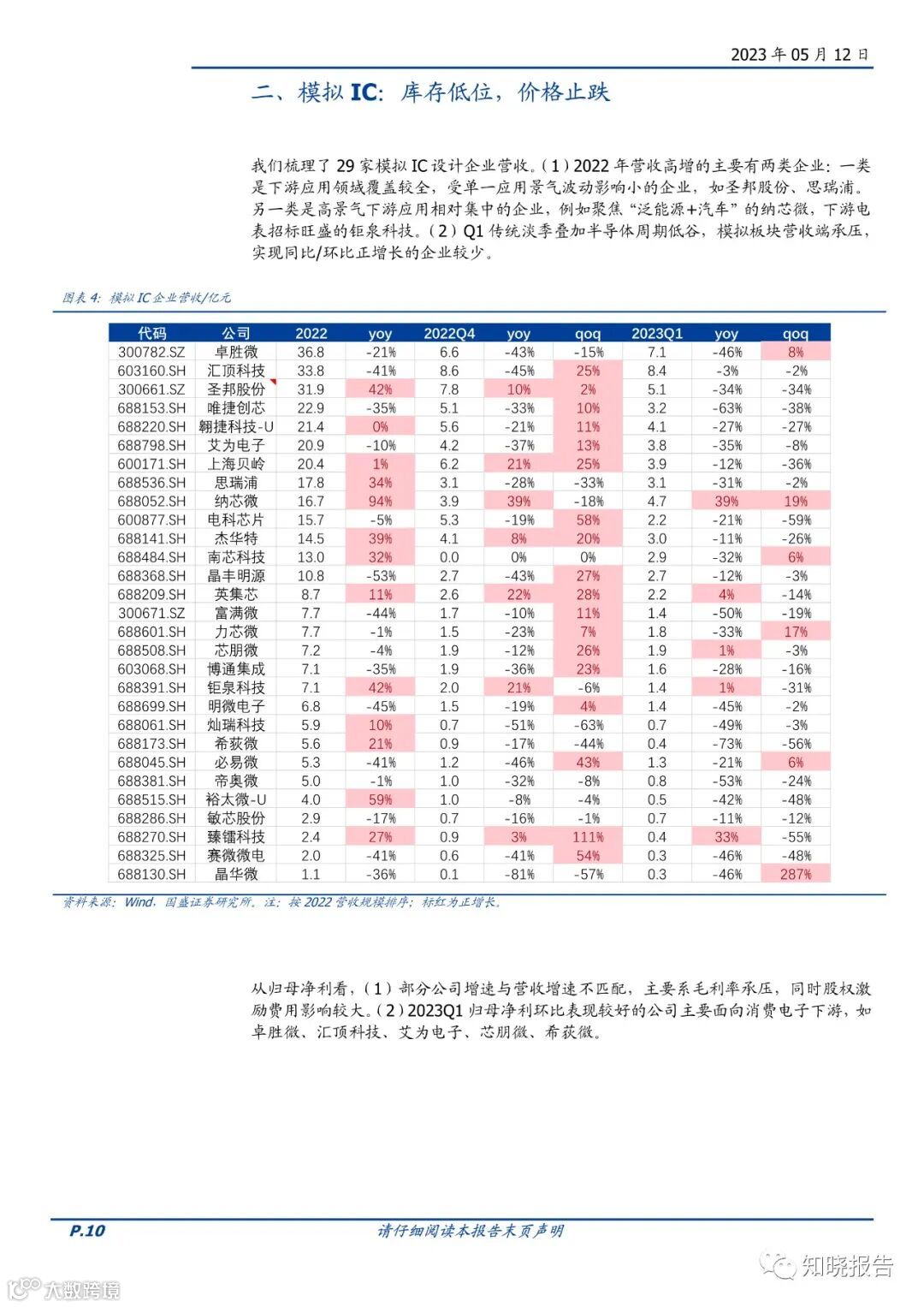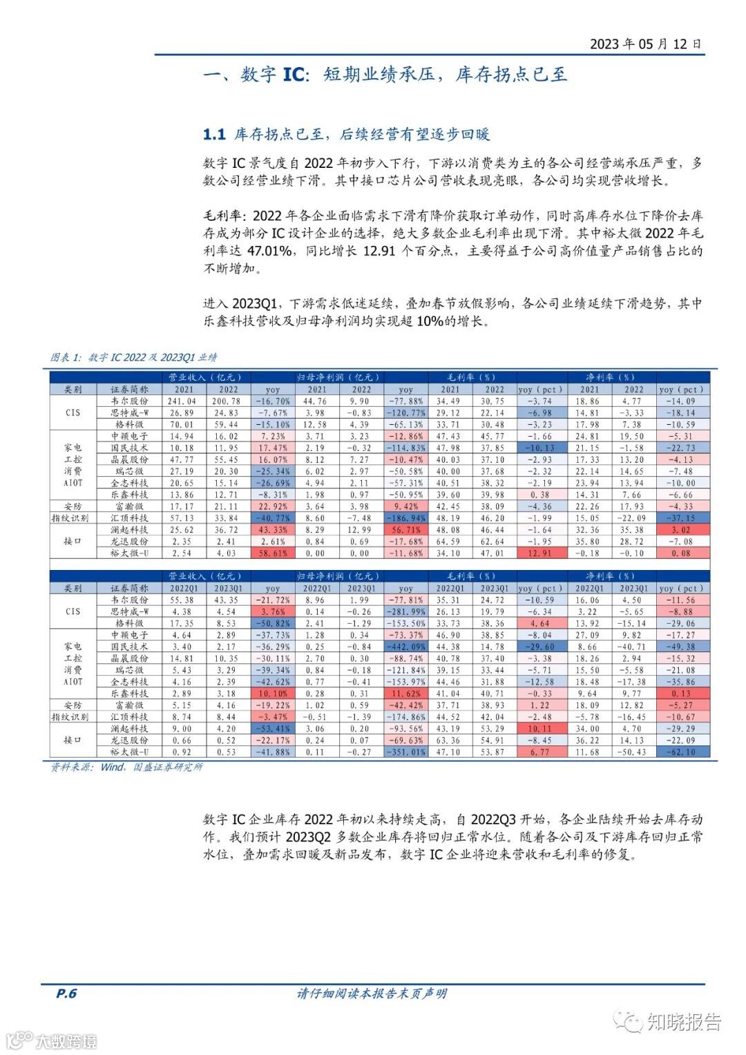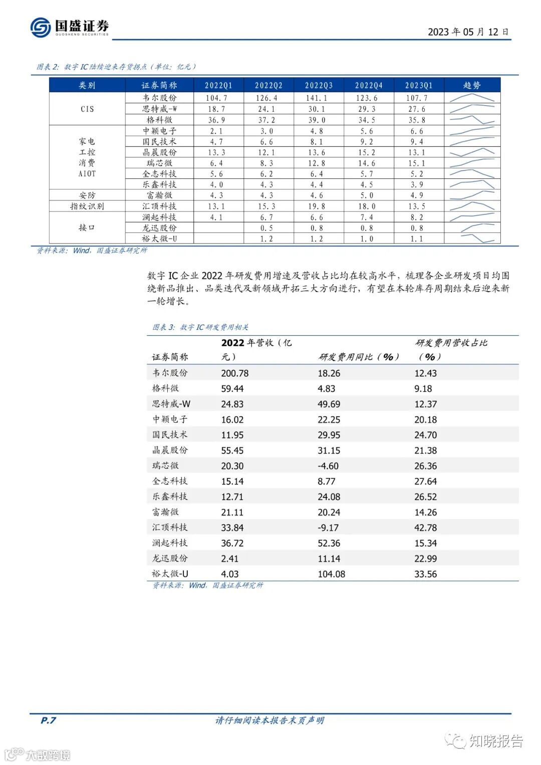 度自2022年初步入下行,下游以消费类为主的各公司经营端承压严重,业绩多数下滑。接口芯片公司营收表现亮眼,各公司均实现营收增长。2023Q1下游需求低迷延续,叠加春节放假影响,业绩延续下滑趋势。2022年各公司继续加大研发投入,围绕新品推出、品类迭代及新领域开拓三大方向展开,有望在本轮库存周期结束后迎来新一轮增长,而AI大模型的落地应用将带动以视觉及听觉为入口的边缘侧需求增长。