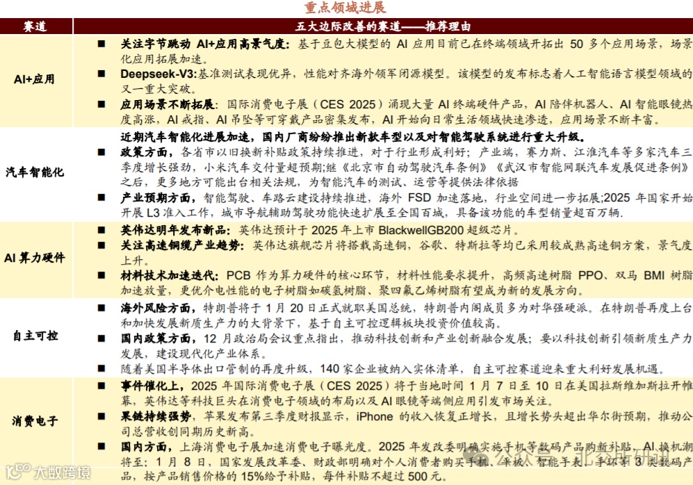 主要产业趋势的进:AI+应用、汽车智能化、消费电子、自主可控、AI算力硬件等领域;