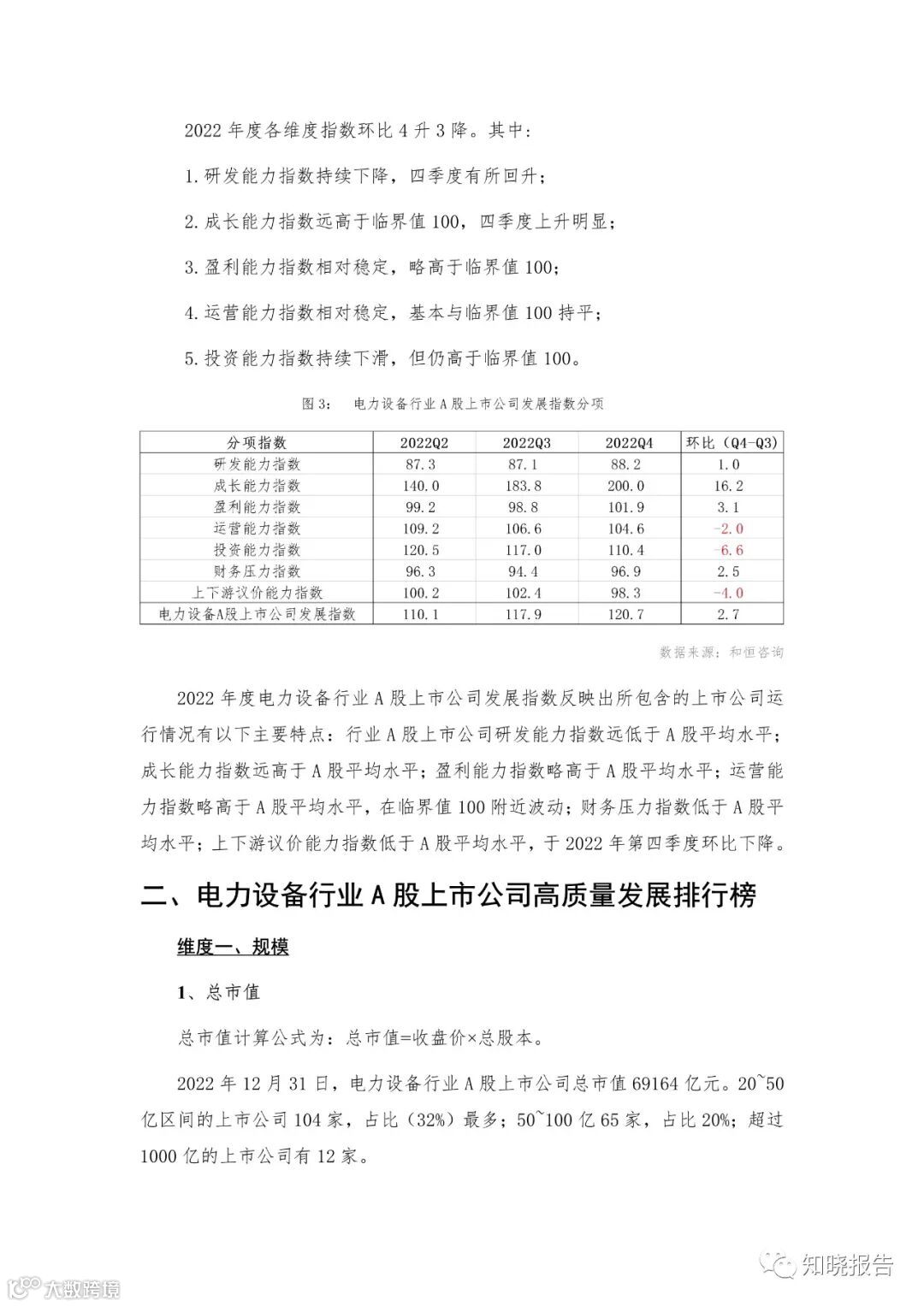 2022 年电力设备行业 A 股上市公司发展状况如何?和恒咨询基于上市公司 2022 年报的公开数据,通过“行业发展指数”,对行业的发展变化以及其与 A 股平均水平的对比进行综述。同时,选取核心财务指标对行业内上市公司进行排名,通过“排行榜”向大家展示电力设备行业 A 股上市公司发展的动态变化。