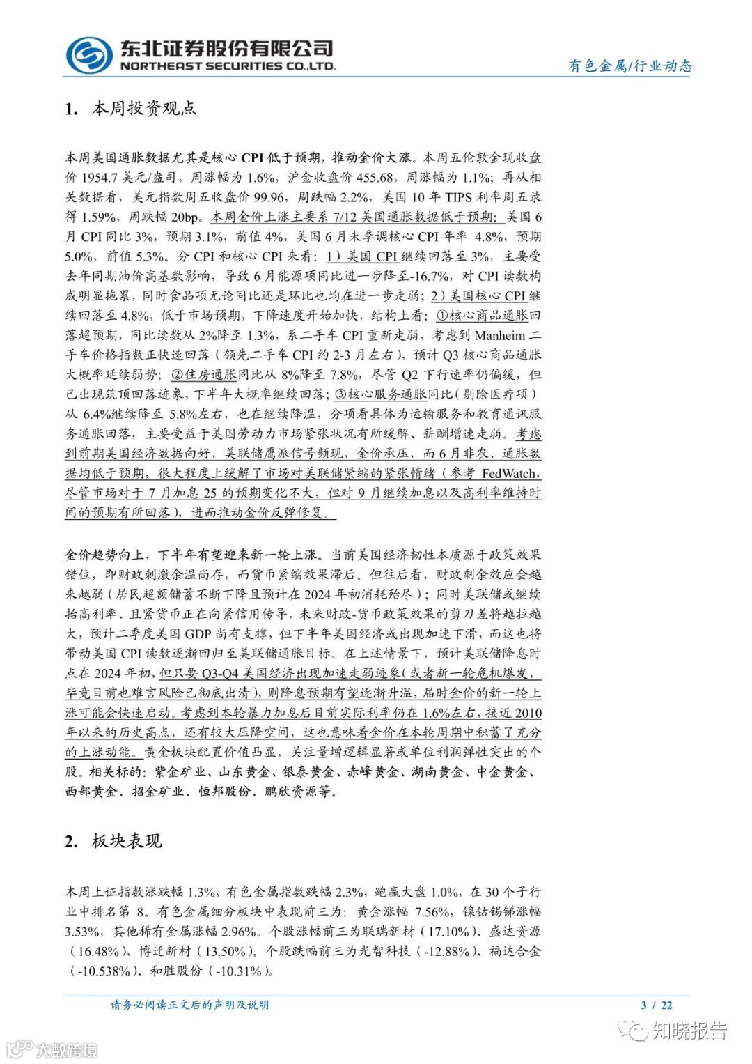 本周美国通胀数据尤其是核心CPI低于预期,推动金价大涨。本周五伦敦金现收盘价1954.7美元/盎司,周涨幅为1.6%,沪金收盘价455.68,周涨幅为1.1%;再从相关数据看,美元指数周五收盘价99.96,周跌幅2.2%,美国10年TIPS利率周五录得1.59%,周跌幅20bp。本周金价上涨主要系7/12美国通胀数据低于预期:美国6月CPI同比3%,预期3.1%,前值4%,美国6月未季调核心CPI年率4.8%,预期5.0%,前值5.3%。
