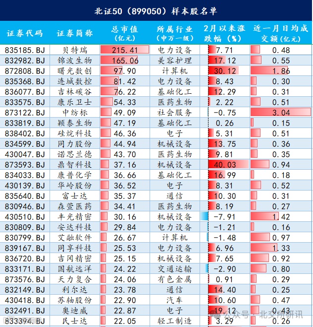 2024年2月23日,北京证券交易所和中证指数有限公司对北证50(899050)样本股及备选名单进行定期调整,于2024年3月11日正式生效。