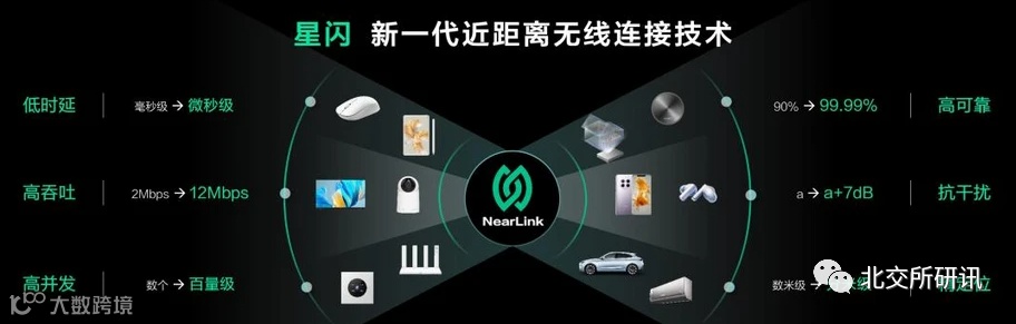星闪(NearLink)用一套标准集合蓝牙和WIFI等传统无线技术的优势,适用于消费电子、智能家居、新能源汽车、工业智造等多种场景。相比蓝牙技术,功耗降低60%、传输速率提升6倍,具备更低时延、更稳定连接抗干扰能力,覆盖距离提升2倍,连接数提升10倍。