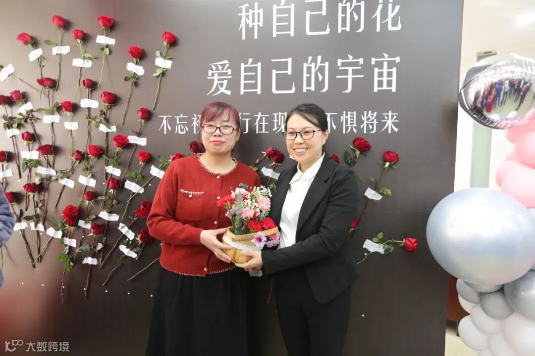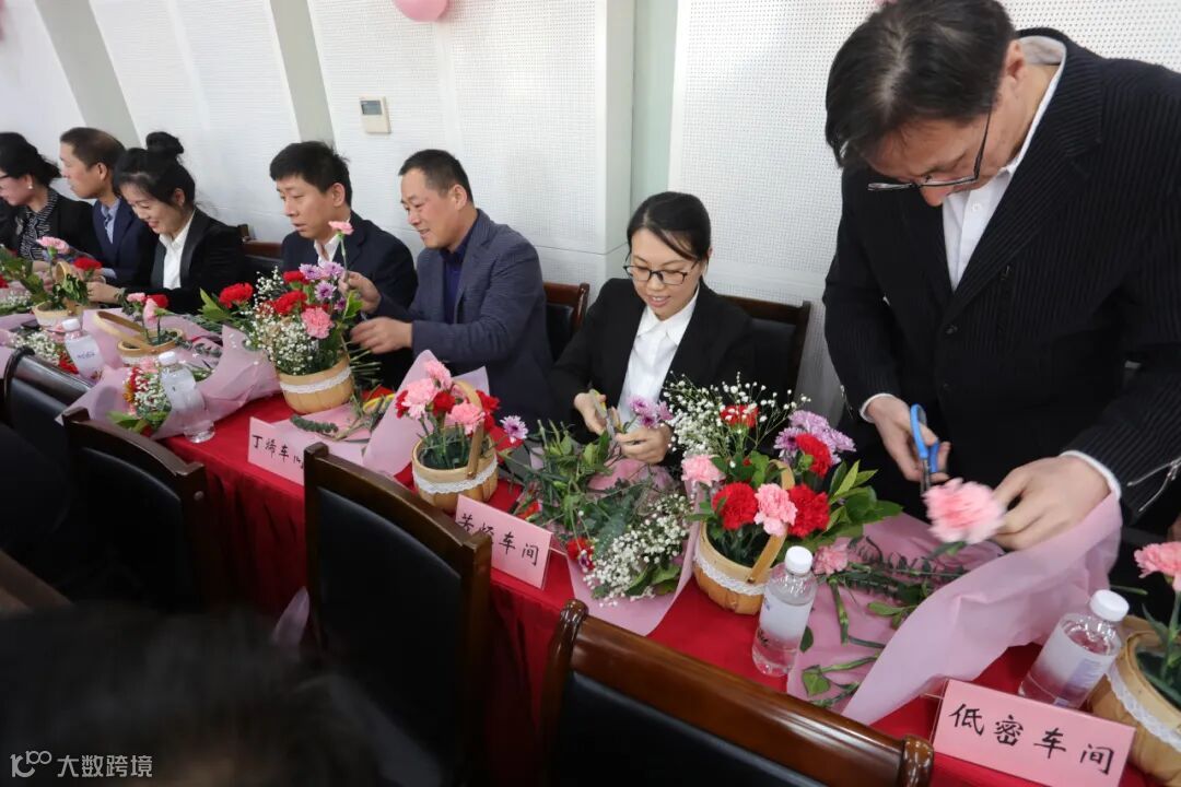 该厂领导班子成员、机关、基层党支部书记将承载着满满祝福的精美花篮送到优秀女工手中,女工脸上洋溢着幸福的笑容,营造了温馨、和谐的氛围。参会女工还在“玫瑰墙”上选取喜爱的女性宣言并拍照留念,记录幸福瞬间。