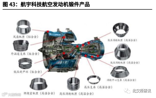 航宇科技主要从事航空难变形金属材料环形锻件研发、生产和销售的高新 技术企业,主要产品为航空发动机环形锻件。公司产品亦应用于航天火 箭发动机、导弹、舰载燃机、工业燃气轮机、核电装备等高端装备领域。航空业务:公司航空锻件以航空发动机锻件为主,也为 APU、飞机短舱、飞机起落架等飞机部件提供航空锻件。公司航空发动机锻件应用于我国预研、 在研、现役的多款国产航空发动机,包括长江系列国产商用航空发动机;也用于GE航空、普惠P&W、赛峰SAFRAN、罗罗RR、MTU 等国际航 空发动机制造商研制生产的多款新一代商用航空发动机。航天业务:公司航天锻件主要运用于运载火箭发动机及导弹系统,包括用 于连接航天装备各部段的各类筒形壳体。燃机业务:公司燃气轮机锻件产品主要应用于驱逐舰、护卫舰等舰载燃气 轮机及工业燃气轮机,包括国产先进舰载燃机、国产重型燃气轮机、国际先进 的工业燃气轮机。能源业务:公司能源装备锻件主要为风电装备的各类轴承锻件、核电装备 的各类阀体、筒体和法兰,以及用于生产锂离子电池的基本材料电解铜箔装备 的钛环/阴极辊。除上述领域产品外,公司锻件产品少量应用于兵工装备、高铁装备、化工 装备、工程机械等多个领域。