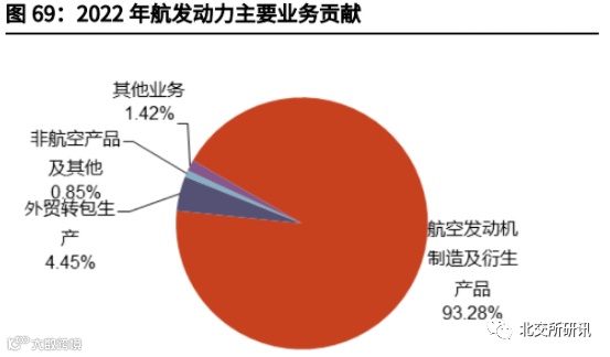 航发动力作为国内唯一能研制涡喷、涡扇、涡轴、涡桨、活塞等全谱系军 用航空发动机的企业,是中国航发旗下航空动力整体上市唯一平台。在国际 上,公司是能够自主研制航空发动机产品的少数企业之一。公司主要业务分为三类:航空发动机及衍生产品业务、外贸出口转包业 务、非航空产品及其他业务。主要产品和服务有航空发动机及燃气轮机整机、 部件,维修保障服务以及航空发动机零部件出口转包等。公司产品用于为航空 器、舰船提供动力。公司 2022 年经营情况分业务看,核心业务航空发动机及衍生产品业务实 现收入 346.0 亿元,同比增长 8.53%,主要是客户需求增加,产品交付增加, 营收贡献占比 93.3%,业务聚焦度高;外贸出口转包业务实现收入 16.5 亿元, 同比+27.8%,主要是出口订单增加;非航空产品及其他业务实现收入 3.2 亿 元,同比-35.5%,主要是自揽民品收入减少。公司全年综合毛利率同比1.67PCT 至 10.8%,主要原因为产品结构调整,新产品占比增加,航空发动机 及衍生产品业务毛利率降低 1.79PCT 至 10.2%。