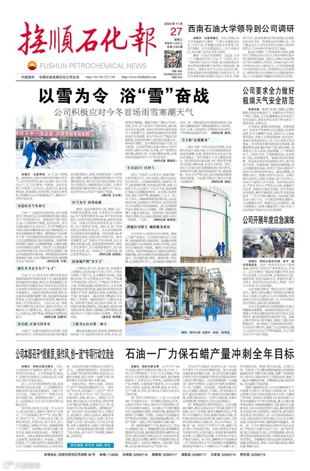 导读:《抚顺石化报》2024年11月27日