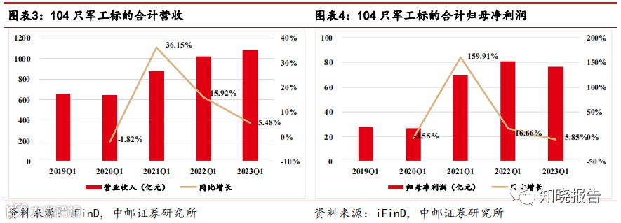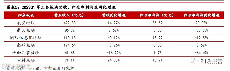 1.1 2022 年和 2023Q1 军工行业整体稳定增长