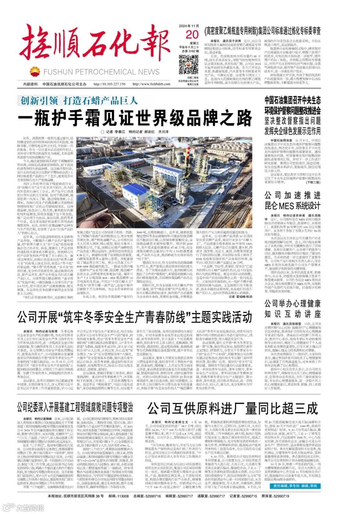 导读:《抚顺石化报》2024年11月20日