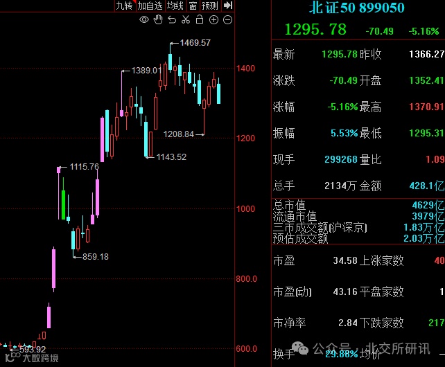 中长期分析:从中长期来看,北交所的发展前景广阔。随着政策的持续支持、市场制度的不断完善、上市公司质量的逐步提高以及流动性的进一步改善,北交所市场将吸引更多的优质企业上市和投资者参与,其市场规模和影响力有望不断提升。因此北交所研讯对于具有长期投资眼光的投资者来说,可以关注北交所中那些业绩稳定、估值合理、具有核心竞争力和成长潜力的优质个股,逢低布局,分享北交所市场未来的发展红利。