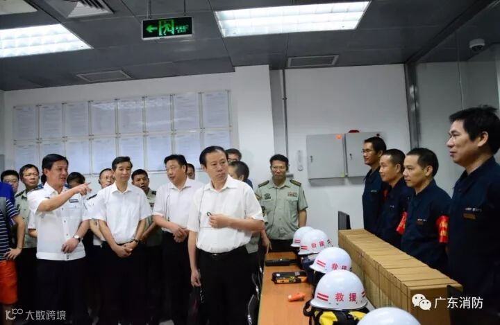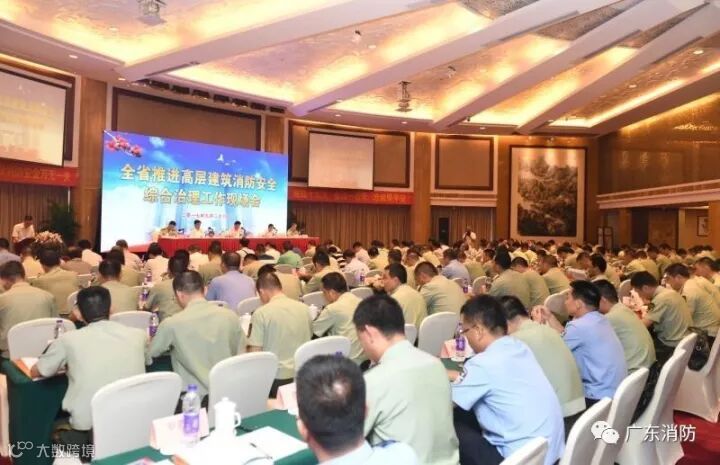 9月26日,广东省政府在广州召开全省推进高层建筑消防安全综合治理现场会,公安部消防局副局长魏捍东,省政府副秘书长刘洪,省公安厅常务副厅长李庆雄,省消安委副主任、省公安消防总队总队长曹奇,省消安委副主任、省公安消防总队政委黄远杰,部分省级行业部门和省属单位领导,各地级以上市人民政府分管消防工作的副秘书长,省公安消防总队及各市公安消防支队相关负责人约300人参加了会议,与会人员参观调研了广州市公安消防部队高层建筑灭火救援专业队、超高层建筑灭火救援技术处置队、微型消防站“两队一站”示范点建设情况。