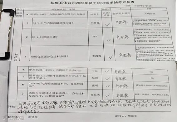 该厂人事部每周组织专业部室到班组进行现场考核,现场提问32人次,模拟操作检验15人次,抽考人员能够熟练掌握本周培训内容,小袋拆包及气力输送岗位操作、设备操控优秀率达到100%。