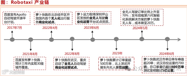 萝卜快跑目前总投放量约1000辆,计划到2024年底在武汉实现收支平衡,并在2025年进入盈利期。2027年再投放2万台车,大部分为5代车,布局70个城市。