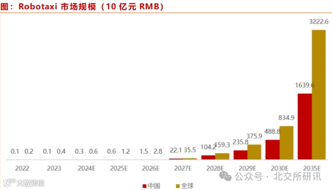 2030年Robotaxi在中国智慧出行的渗透率将达到31.8%,2035年将达到69.3%。2030年中国和全球Robotaxi市场规模将分别达4888亿/8349亿元,2024-2030年CAGR分别为248%/239%,到2035年将分别达1.6万亿/3.2万亿元,2030-2035年CAGR分别为27.4%/31%。