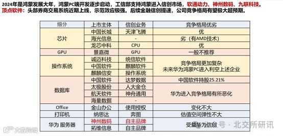 北交所研讯统计了CPU/GPU、OS、PC、办公软件等领域核心公司2024Q1的总营收同比变化情况: