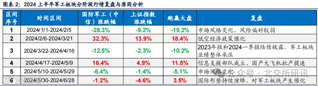 2024上半年国防军工指数回调10.7%,板块分化加剧。