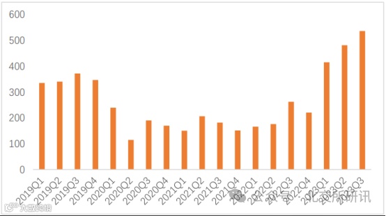 携程 2019Q1-2023Q3 机票预定业务当季值(万元)