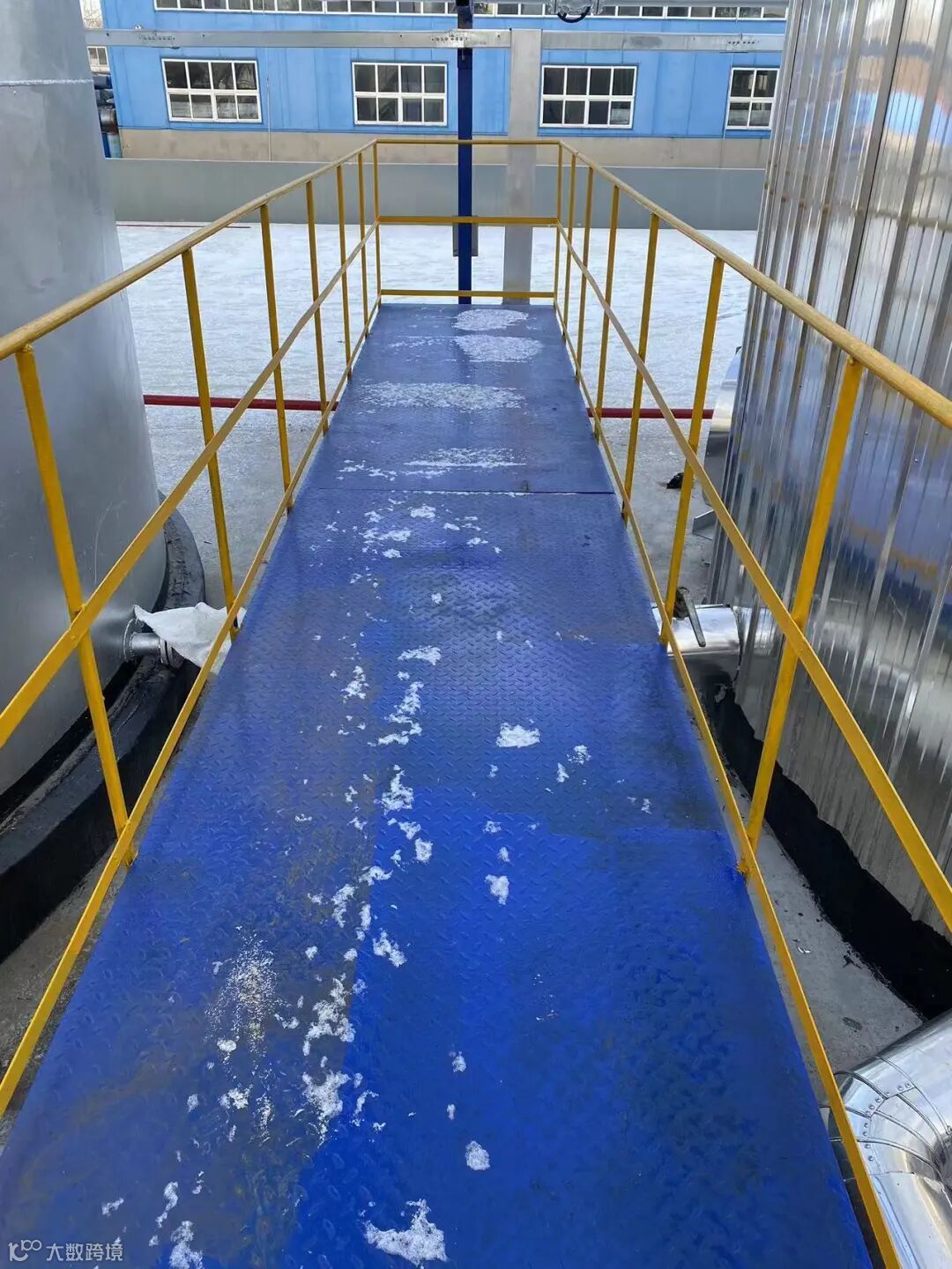 此外,车间在罐区增设约90㎡巡检平台,平台呈“丰”字安装于各罐之间管线之上,防止员工进行罐区操作跨越管线时发生意外,同时也保护了管线保温避免被踩踏变形失去保温功能。