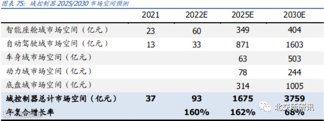 预计2025/2030年全国域控制器市场空间为1675/3759亿元,其中智能座舱域控制器市场空间为349/404亿元,自动驾驶域控制器市场空间为871/1603亿元。2021-2025年复合增长率为162%,2021-2030年复合增长率为68%。平安证券预计2025年智驾域/座舱域搭载量为559/498万套。