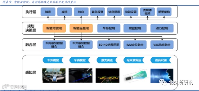 智能座舱域、自动驾驶域是现阶段体现整车智能化差异的关键所在,是车企的布局重点。当前,智能座舱域是全球众多车企的发力重点,也将重点体现未来车企产品智能化水平的核心差异。