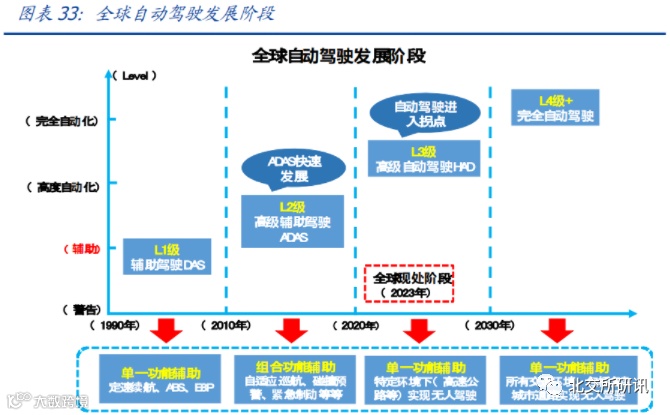 国家工信部发布的《汽车驾驶自动化分级》文件将自动驾驶系统分为L0-L5共6个等级,当前市场规模量产的新能源与传统燃油车型)仍为L2+级自动驾驶系统。