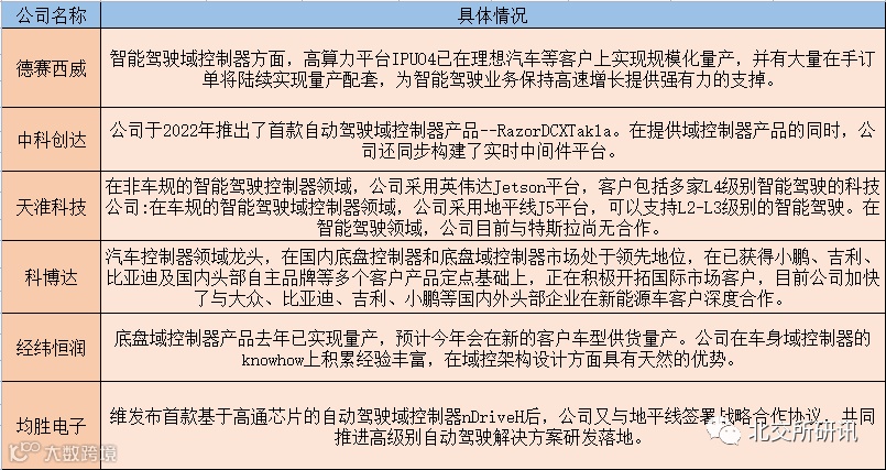 涉及域控制器相关业务的上市公司有:德赛西威、中科创达、