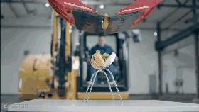第二步:将面包放置于特定地点,以挖机铲斗切开。