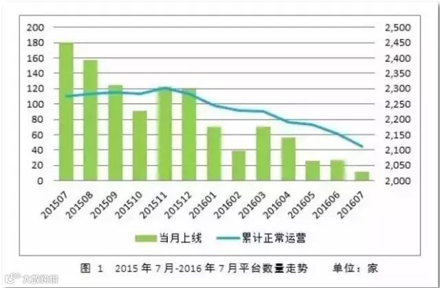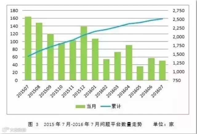 截至2016年7月31日,零壹研究院数据中心统计的问题平台共有2,516家,占平台总数的比例高达54.4%。2016年6月有51家平台出问题,较上月减少6家。